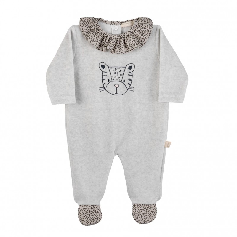 Babygrow c/ gola folhos leopardo
