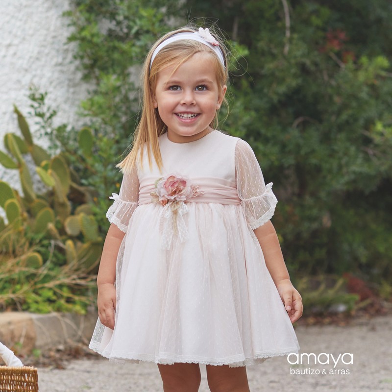 Vestido c/ flor renda e tule